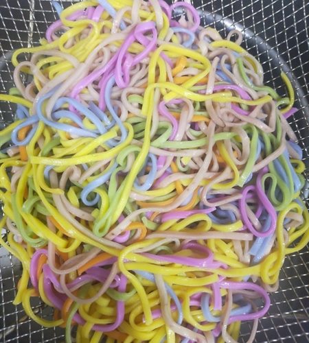 Mì rau củ làm từ 85% tinh bột lúa mì cao cấp, 15% rau củ tươi ( Bí đỏ, đậu biếc, gấc, cải bó xôi, củ dền)